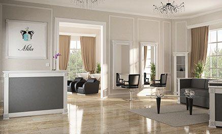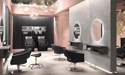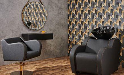 Dieses High -End -Wohnzimmer eignet sich perfekt für Friseursalons, die nach einem originellen und visuell sauberen Design -Touch suchen.