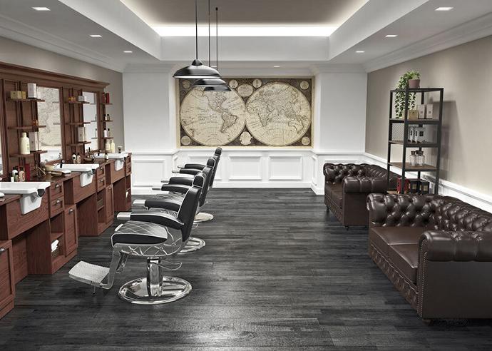 Mobilier pour salon complet barbier Haut de Gamme au style boisé et naturel vous offrira un décor sobre et simple adapté à beaucoup d'enseignes.