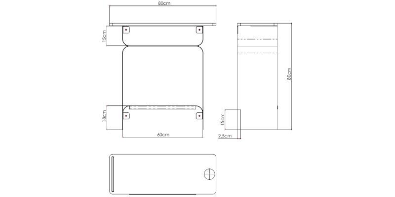 Meuble de coiffure avec structure métallique courbée noire et plateau en bois massif équipé d'un support sèche-cheveux